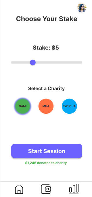 Pick how much you’d like to stake and set a timer for your focus session. It’s your commitment to stay on track